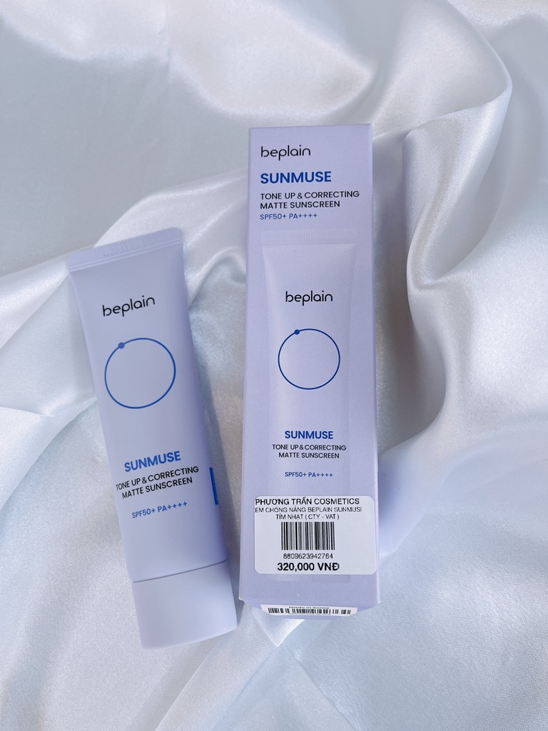 Beplain Sunmuse tông tím nhạt là dòng kem chống nắng nâng tông trắng nhẹ, bảo vệ toàn diện và tạo finish mịn hơn, phù hợp cho da xỉn màu cần hiệu chỉnh tone tự nhiên mà vẫn giữ cảm giác nhẹ mặt mỗi ngày.