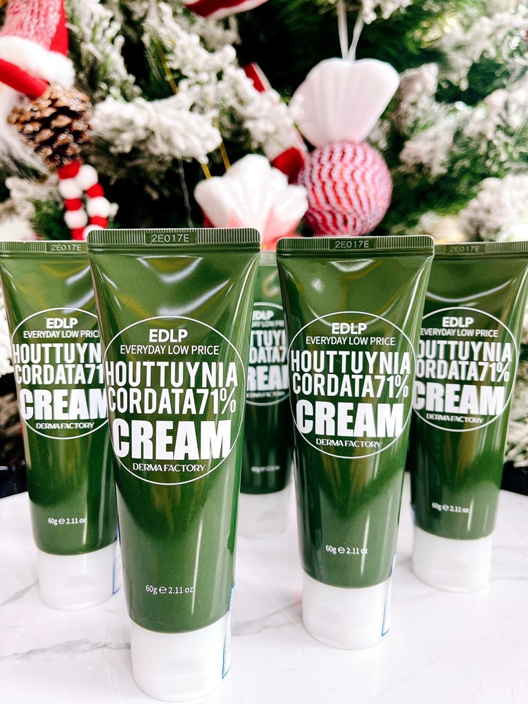 Kem dưỡng Derma Factory Houttuynia Cordata 71% Cream là kem dưỡng da dạng gel‑cream với chiết xuất rau diếp cá (Houttuynia Cordata) chiếm đến 71% trong công thức – giúp cung cấp độ ẩm, làm dịu và phục hồi làn da mệt mỏi, nhạy cảm hay bị kích ứng. Sản phẩm có kết cấu gel cream trong suốt, nhẹ tênh, thấm nhanh và mang lại cảm giác mềm mịn mà không nhờn rít.